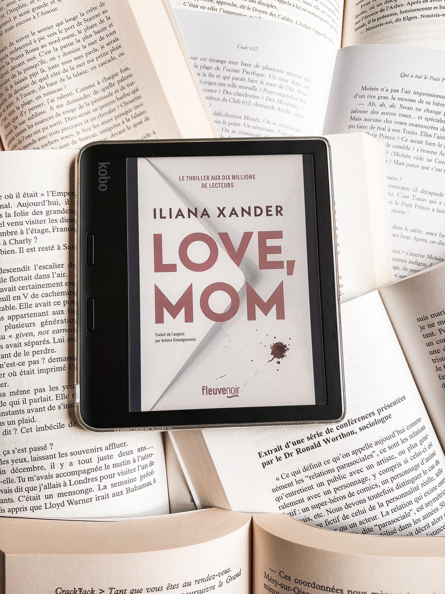 Love, Mom est un thriller psychologique, dans lequel on suit Mackenzie, qui a toujours vécu dans l’ombre de sa mère, une écrivaine de romans noirs à succès. C’est à la suite de la mort de sa mère, dans des circonstances plutôt étranges, que Mackenzie trouve une lettre anonyme signée “Love, Mom”, contenant des extraits du journal intime de sa mère.